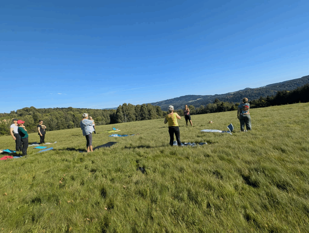 W jesienną, słoneczną niedzielę 21 września koło Kgw Taszowiacy zorganizowało kolejne już spotkanie z “jogą na łące”. Takie spotkania wzbudzają zainteresowanie tych mieszkanców, którzy są gotowi do wspólnych zajęć w plenerze. Były ćwiczenia rozciągające, relaks i medytacja przy pięknej, słonecznej, jesiennej aurze. Dziękujemy za obecność!